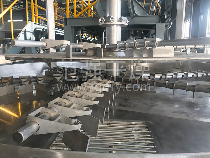 ◎通過(guò)調整料層厚度、主軸轉速、耙臂數量、耙葉型式和尺寸使干燥過(guò)程達到更佳。
