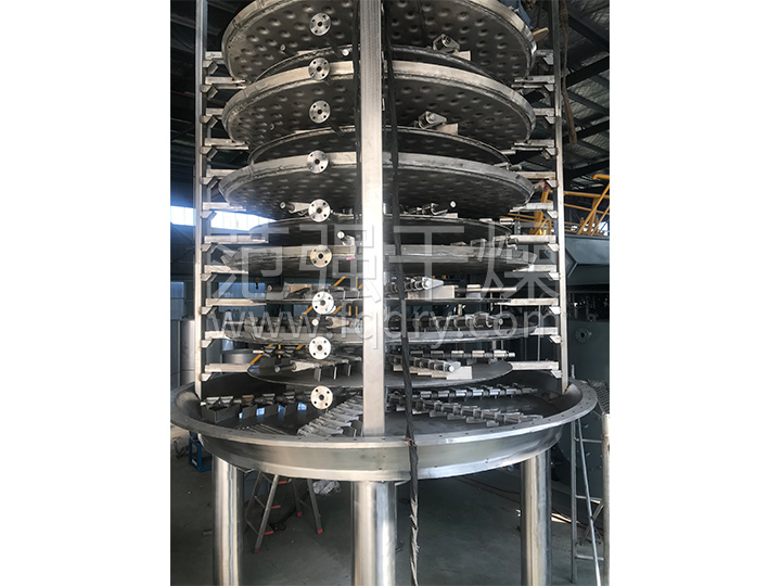◎每層干燥盤(pán)皆可單獨通過(guò)入熱介質(zhì)或冷介質(zhì)、對物料進(jìn)行加熱或冷卻,物料溫度控制準確、容易。